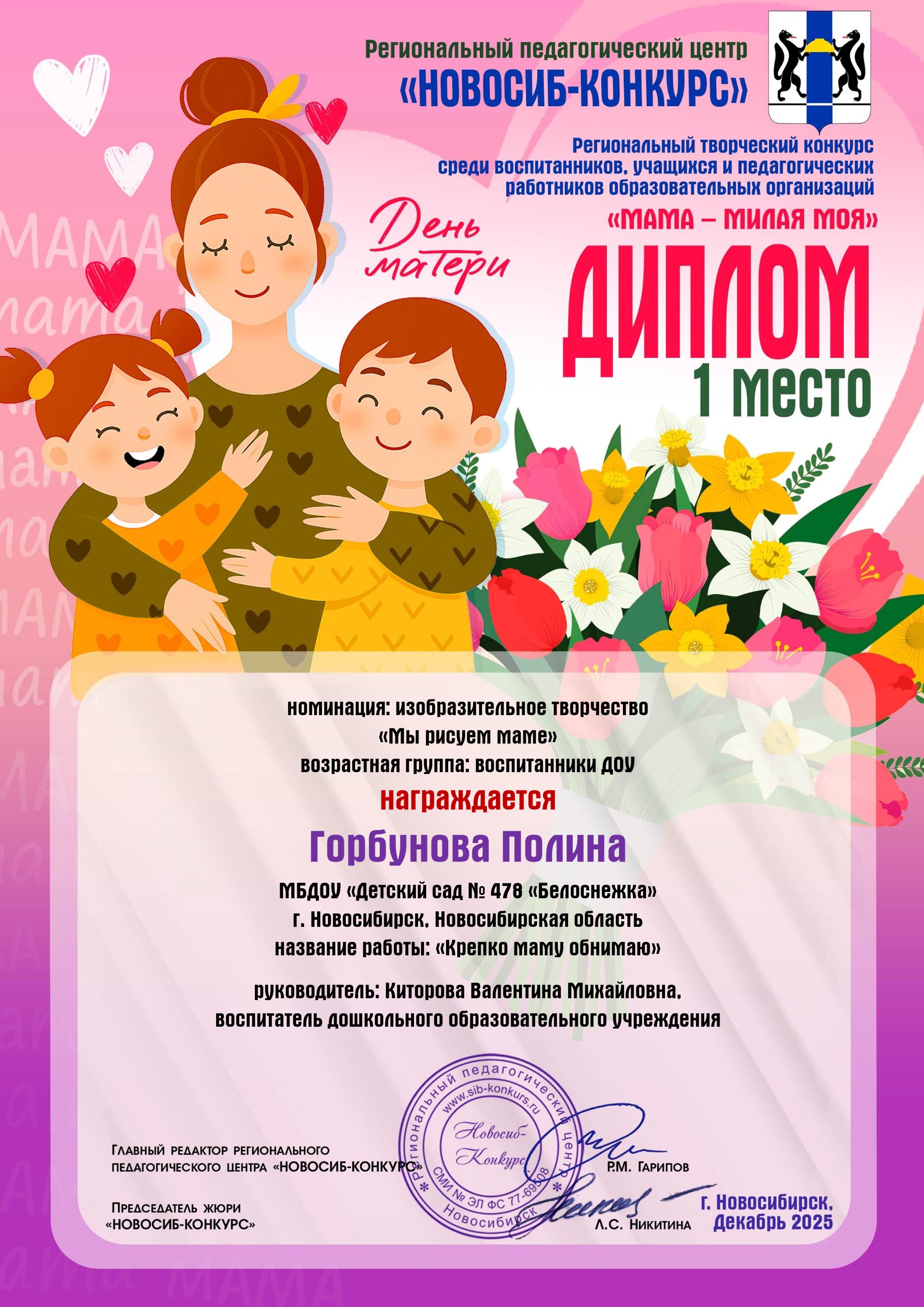Творческий конкурс "Мама - милая моя". Номинация "Изобразительное творчество - Мы рисуем маме". Название работы "Крепко маму обнимаю"